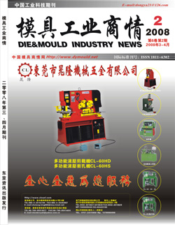 ----本刊以服務(wù)模具制造企業(yè)為辦刊宗旨,面向模具界科研部門、工廠、企事業(yè)單位以及所有與模具制造相關(guān)的人士發(fā)行,為模具制造企業(yè)提供設(shè)計(jì)技術(shù)、制造工藝、市場(chǎng)動(dòng)態(tài)和行業(yè)信息等多方面的幫助。在行業(yè)內(nèi)具有較大的影響力,是您提高模具設(shè)計(jì)、制造水平的好幫手,也是您展示技術(shù)、產(chǎn)品、企業(yè)形象的最佳舞臺(tái)。