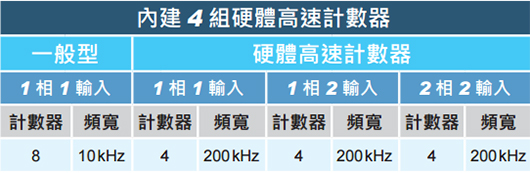 ▲ 高速脈波輸出:4組200kHz (40點以上T機種)