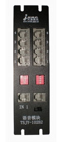 2路電話接入,8路分機,1路電話接入對應4路分機,每個分機端口均設一個拔動開關,通過開關的斷開與連通從而控制各分機的使用權。