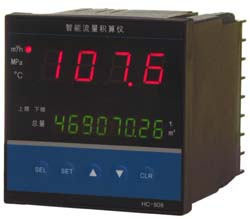 HC-908系列多功能流量積算儀 ●適用范圍 與各種流量傳感器或變送器、溫度傳感器或變送器和壓力變送器配合使用,可對各種液體、蒸汽、天然氣、一般氣體等流量參數(shù)進(jìn)行測量顯示、累積計算、報警控制、變送輸出、數(shù)據(jù)采集及通訊。 ●功能特點 全范圍自動溫度、壓力補償運算,補償方式任意設(shè)定 線性積算、開方積算任意設(shè)定 瞬時流量、累積流量、溫度、壓力多種參數(shù)顯示 小信號切除功能,切除范圍0-5%可選 累積流量值可通過面板按鍵清零,清零操作可鎖 掉電保護功能,累積流量值掉電保持時間大于5年,所有設(shè)定值掉電后永久保持 先進(jìn)的模塊化結(jié)構(gòu),配合功能強大的儀表芯片,功能組合、系統(tǒng)升級非常方便 ●主要技術(shù)指標(biāo) 基本誤差:0.5%FS或 0.2%FS±1個字 分 辨 力:1/20000、14位A/D轉(zhuǎn)換器 顯示方式:雙排同時顯示,上排四位數(shù)碼管顯示瞬時流量,下排八位數(shù)碼管顯示累積流量采樣周期:0.5S 報警輸出:瞬時流量二限報警,繼電器輸出觸點容量 AC220V/3A 變送輸出: 4~20mA、0~10mA、1~5V、0~5V 精度:±0.3%FS 通訊輸出:接口方式--隔離串行雙向通訊接口RS485/RS422/RS232/Modem 波特率--300~9600bps內(nèi)部自由設(shè)定 饋電輸出:DC24V/50mA 電 源:開關(guān)電源 85~265VAC 功耗4W以下
