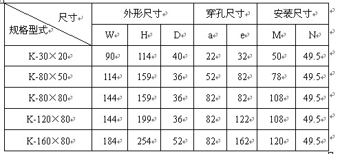 產品型號: K-30*20 K-80*50 K-80*80 K-120*60 K-120*80 K-160*80
