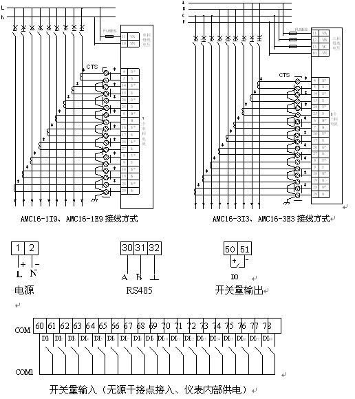 三相U,3路三相I、kW、kWh,RS485/Modbus