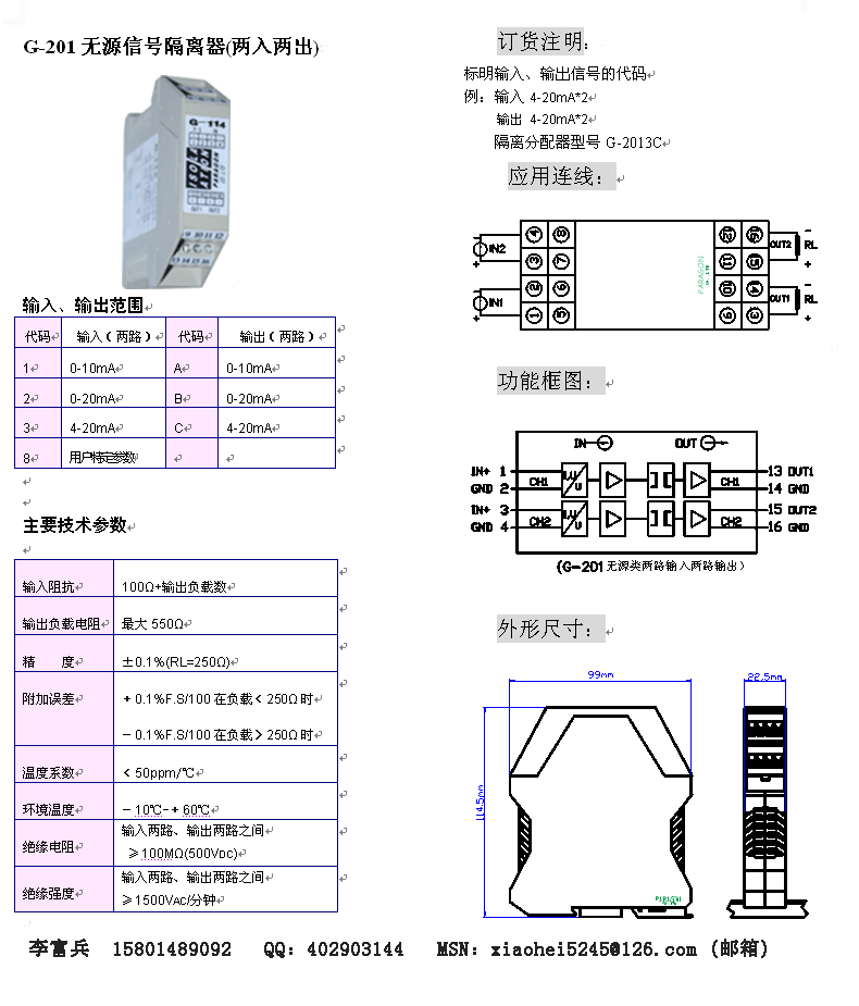 G-201無源兩入兩出信號隔離器 帕羅肯科技有限公司