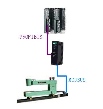 測厚在軋鋼過程中非常重要,數據的精度直接影響到產品的質量。在某軋鋼生產線中,主系統通訊采用了抗干擾能力強、通訊穩定的PROFIBUS總線,而測厚儀無法直接接入到該系統。應用微硬創新MODBUS轉PROFIBUS網關后,將測厚儀接入到PROFIBUS系統中,解決了數據通訊問題。系統圖如下: