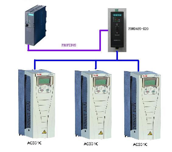的MODBUS轉PROFIBUS網關,將ABB變頻器ACS510接入到PROFIBUS總線中。