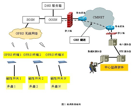 4、 GPRS終端:與磁性開關連接,接收到磁性開關的閉合信號后,通過GPRS網絡把報警信息傳輸的控制中心,由控制中心軟件顯示報警信息。