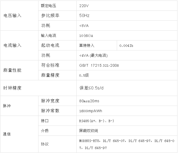 1.1 預付費電能計量儀表DDSY1352-NK主要技術指標