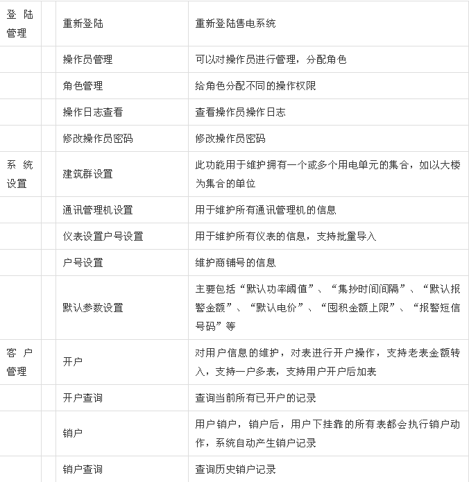 1.電價下發;2.設置下發;3.保電(強制合閘);4.恢復預付費(欠費自動跳閘);5.拉閘(強制斷電);6.抄表導出(導出當前所有表狀態為XLS)