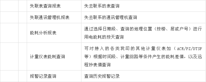 系統還提供了多個報表以供查詢,分別是日/月/年財務銷售統計報表、失聯表/通訊管理機查詢報表、能耗查詢報表、實時報警/歷史報警查詢報表。